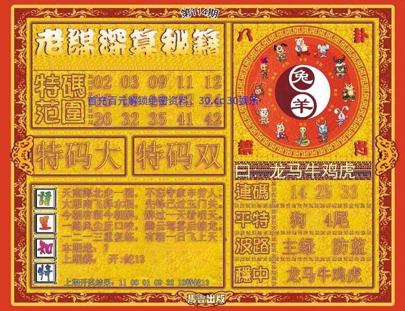 | 312期:一句解生肖/奇准特码诗/每期一玄机/七字中特料/独家资料 |